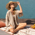 Thanks to its linen content, Aruna peshtemal has a distinct aesthetic style beyond its practical uses. It adds elegance to any environment with its striped patterns and serene natural backdrop. They can be worn as a pareo, used as a stylish shawl or scarf, or simply displayed on your sofa as a decorative throw.